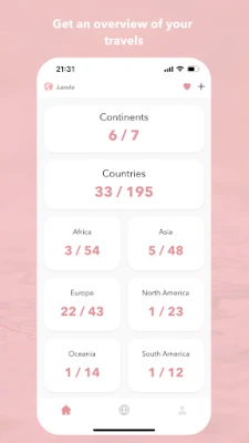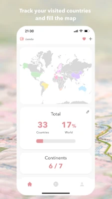 Landa er en rejse tracker app, der lader dig logge de lande, du har besøgt. Visualiser dine rejser på et smukt verdenskort og hold styr på dine eventyr. Perfekt for globetrottere, der vil se verden folde sig ud.