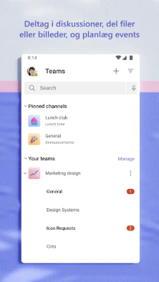 Microsoft Teams samler folk og opgaver. Få alt gjort med chats, kanaler, møder, lagring og kalendere i én app. Opret forbindelse med dit community, familie eller kolleger, del idéer og samarbejd sikkert. Altid forbundet, altid produktiv.