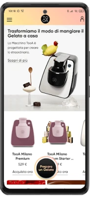 Forestil dig autentisk italiensk gelato, fremstillet af de fineste naturlige ingredienser, helt uden kunstige konserveringsmidler, og som aldrig behøver at blive opbevaret i fryseren – klar til at nydes, når du ønsker det. Dette er præcis, hvad TooA Gelato tilbyder. Nu er det revolutionerende TooA-univers blevet endnu mere tilgængeligt takket være den innovative TooA-app. Denne intelligente ledsager gør det muligt for dig at forvandle den unikke TooA-gelato til en perfekt enkeltportion på få minutter, direkte fra dit spisekammer og lige ud i skålen.