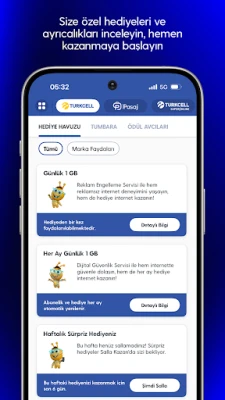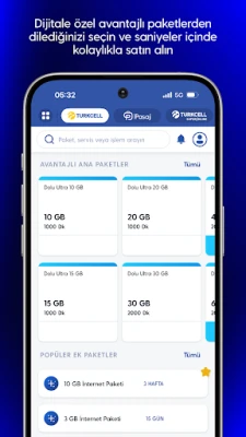 Oplev en brugervenlig og sikker digital verden med Turkcell. Administrer mobilregninger, tank op, og udforsk teknologiske produkter hurtigt. Få adgang til eksklusive tilbud, påmindelser og skift nemt mellem Turkcell og Turkcell Pasaj for en problemfri shoppingoplevelse – også uden login.